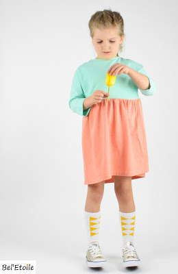 Omdat ik van elk stofje 75cm of 1 meter kocht, had ik nog stof over om ook kleine zus enkele nieuwe jurkjes kadoo te doen.
