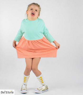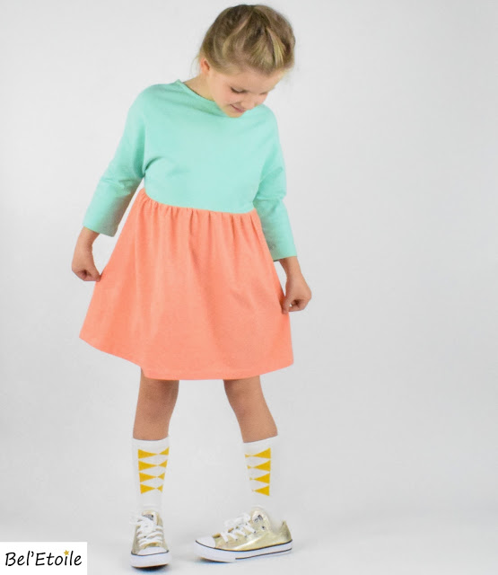 Omdat ik van elk stofje 75cm of 1 meter kocht, had ik nog stof over om ook kleine zus enkele nieuwe jurkjes kadoo te doen.