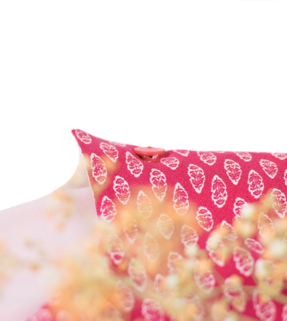 Na wat wikken en wegen koos ik voor een luchtige crêpe stof in een prachtige rode kleur met subtiele beige blaadjesprint.