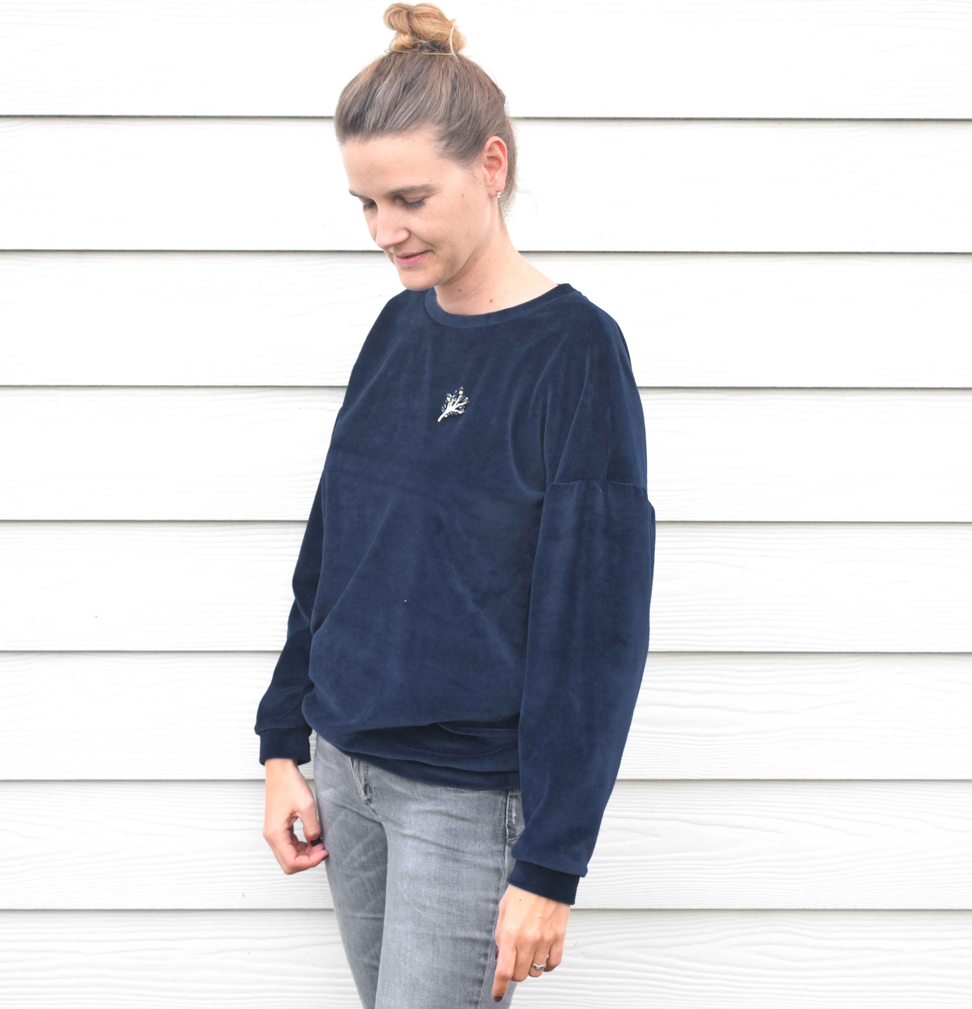 Ik versmalde de sweater, zodat hij een mooie pasvorm heeft, niet oversized, niet spannend, gewoon comfortabel.