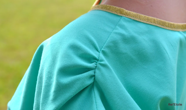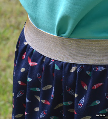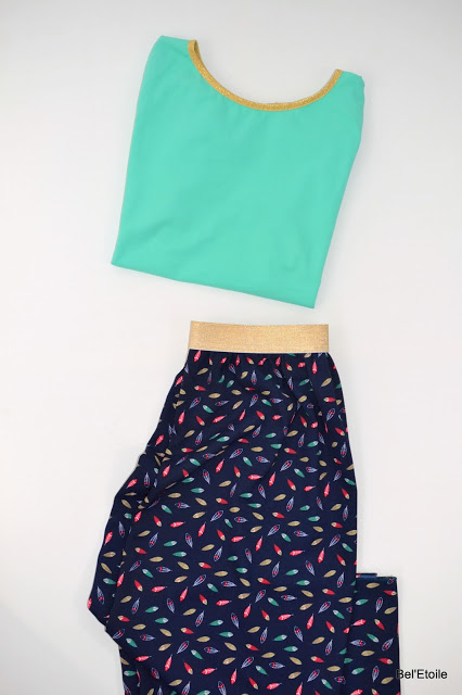 Ik had trouwens maar 1 meter stof nodig waar ik 2 lappen van knipte, die aan elkaar naaide, gouden elastiek eraan en klaar, lekker makkelijk!