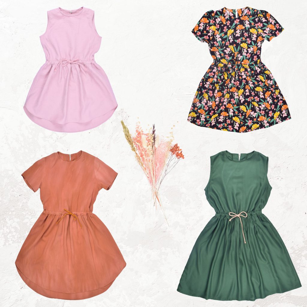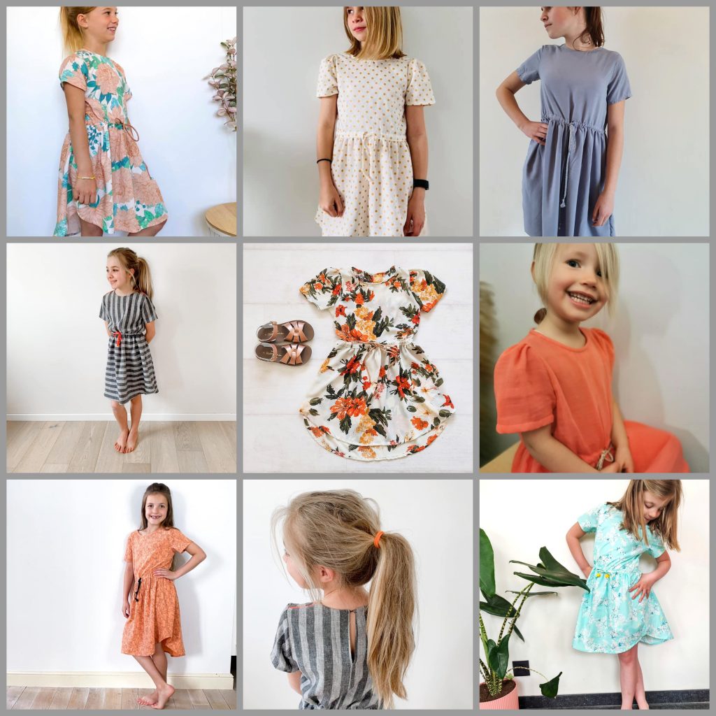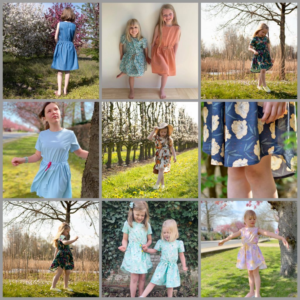 Voor deze jurkjes mocht ik aan de slag met 4 prachtige stoffen uit de collectie van Madeline de Stoffenmadam.