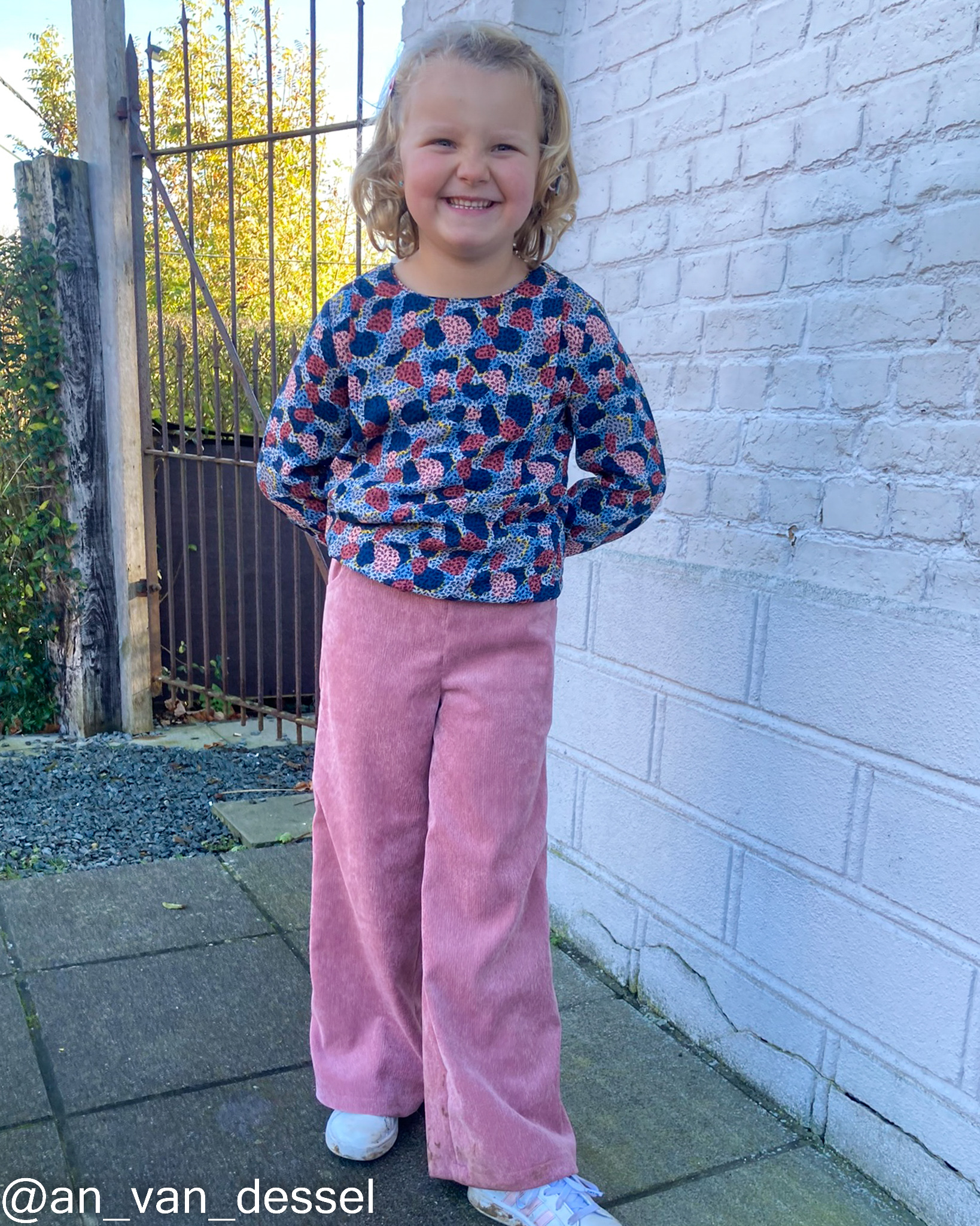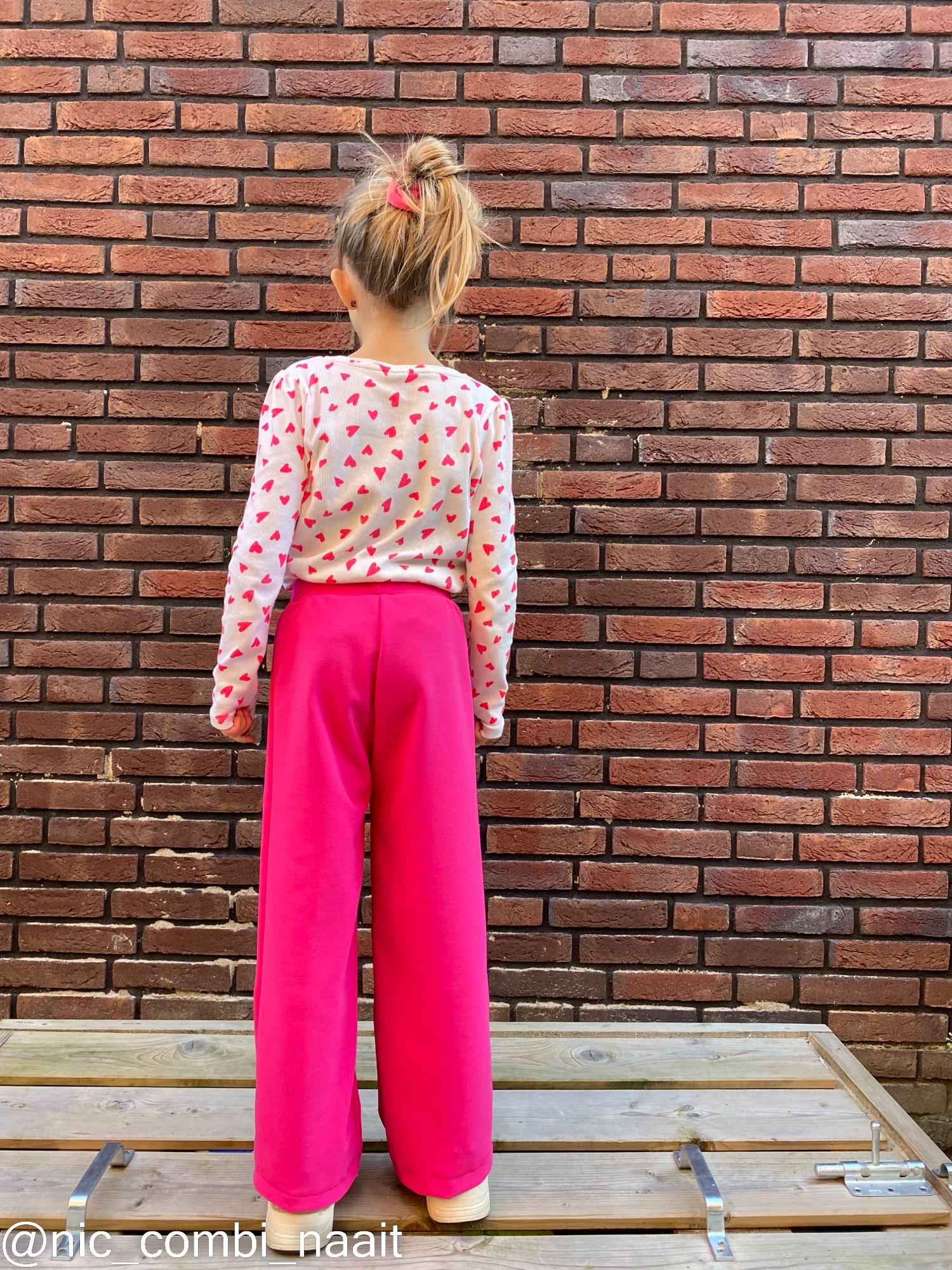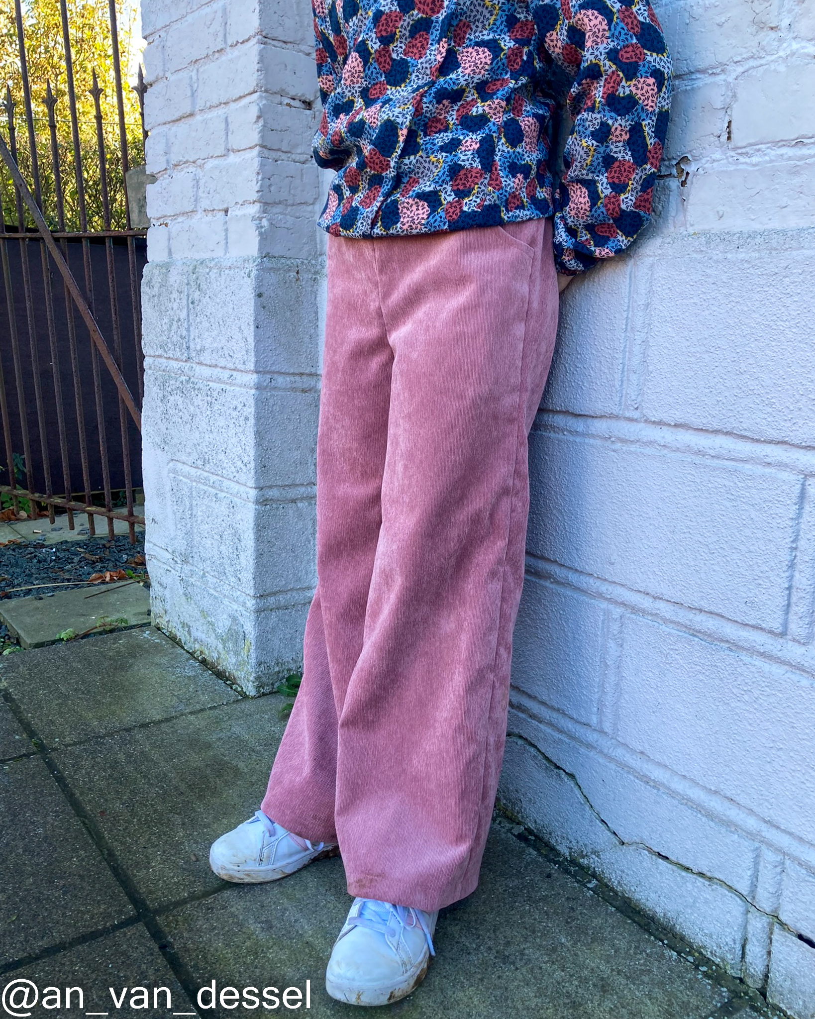 Be careful with fabrics that are too sturdy and don’t ‘fall down’ enough. These can give a poofy look and make the pants look to big,