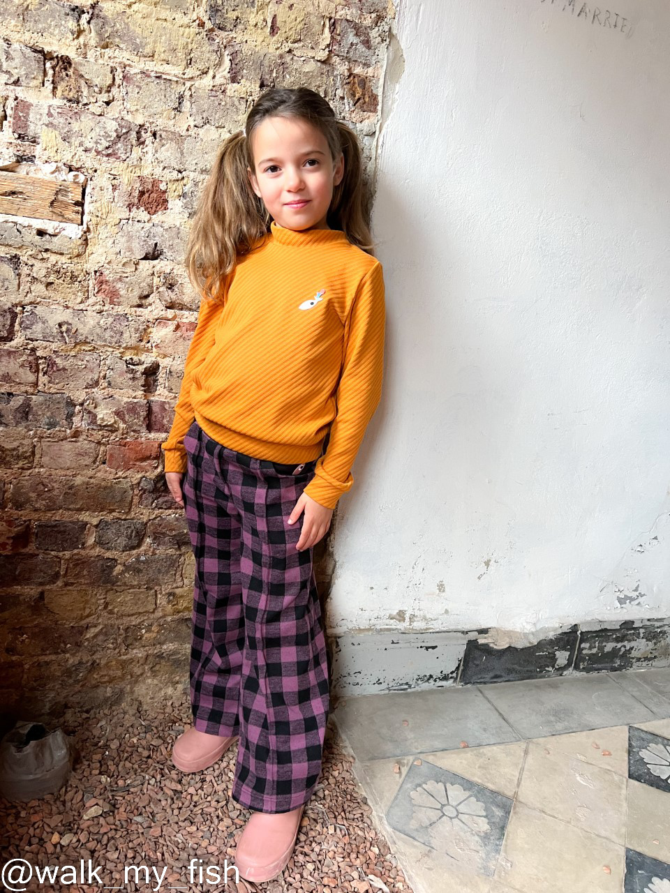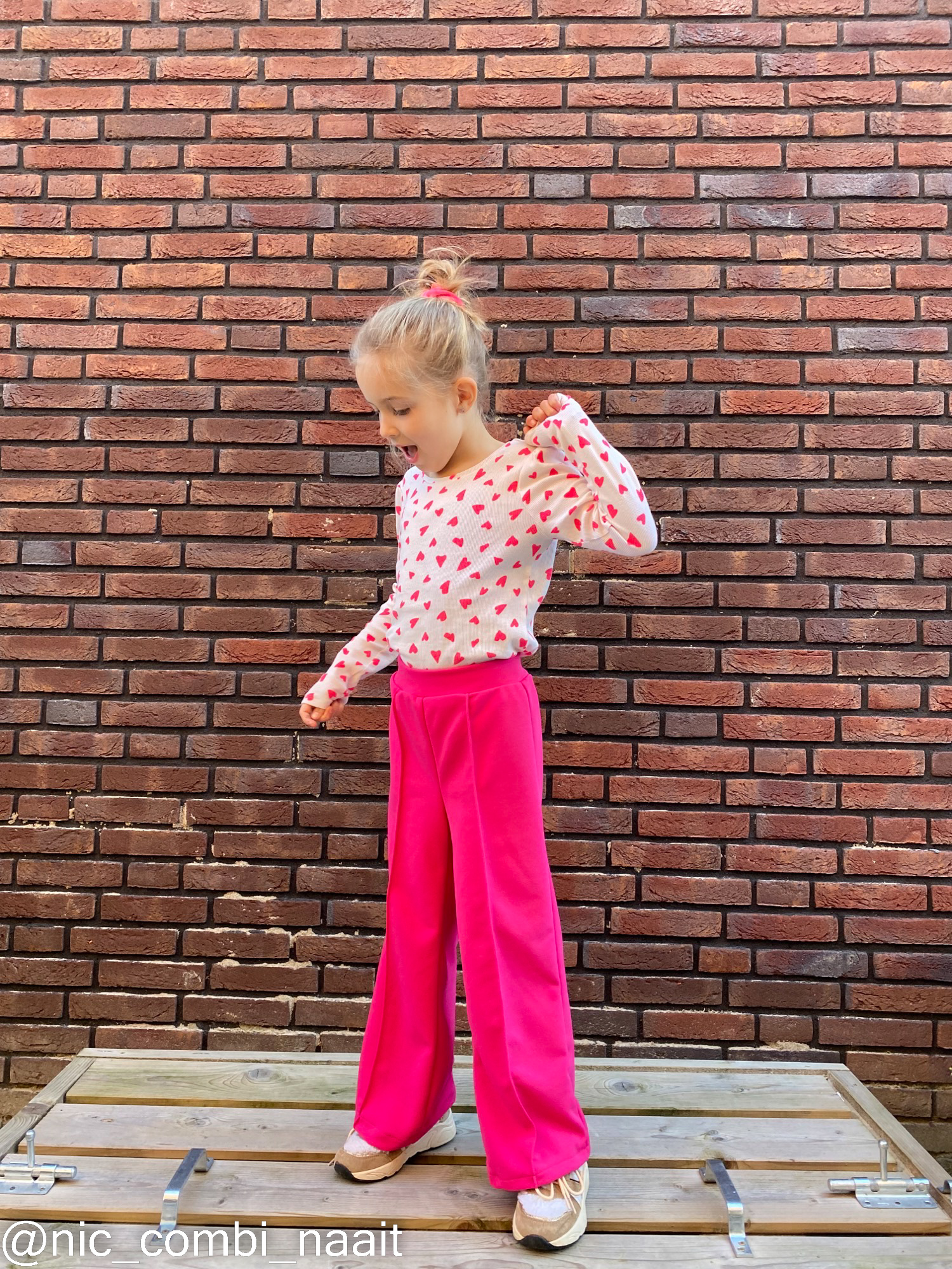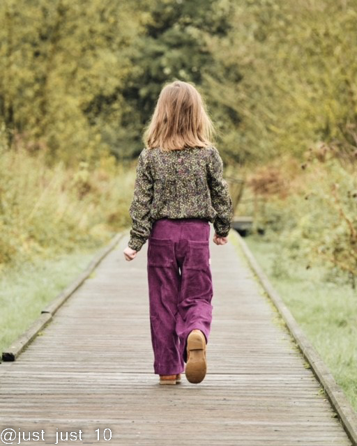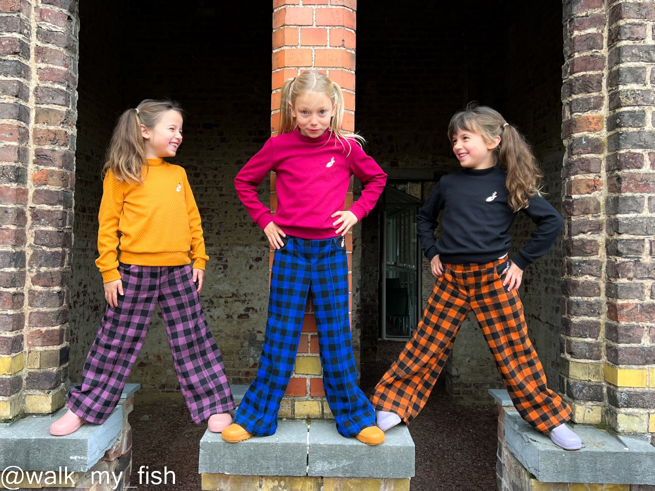 Be careful with fabrics that are too sturdy and don’t ‘fall down’ enough. These can give a poofy look and make the pants look to big,