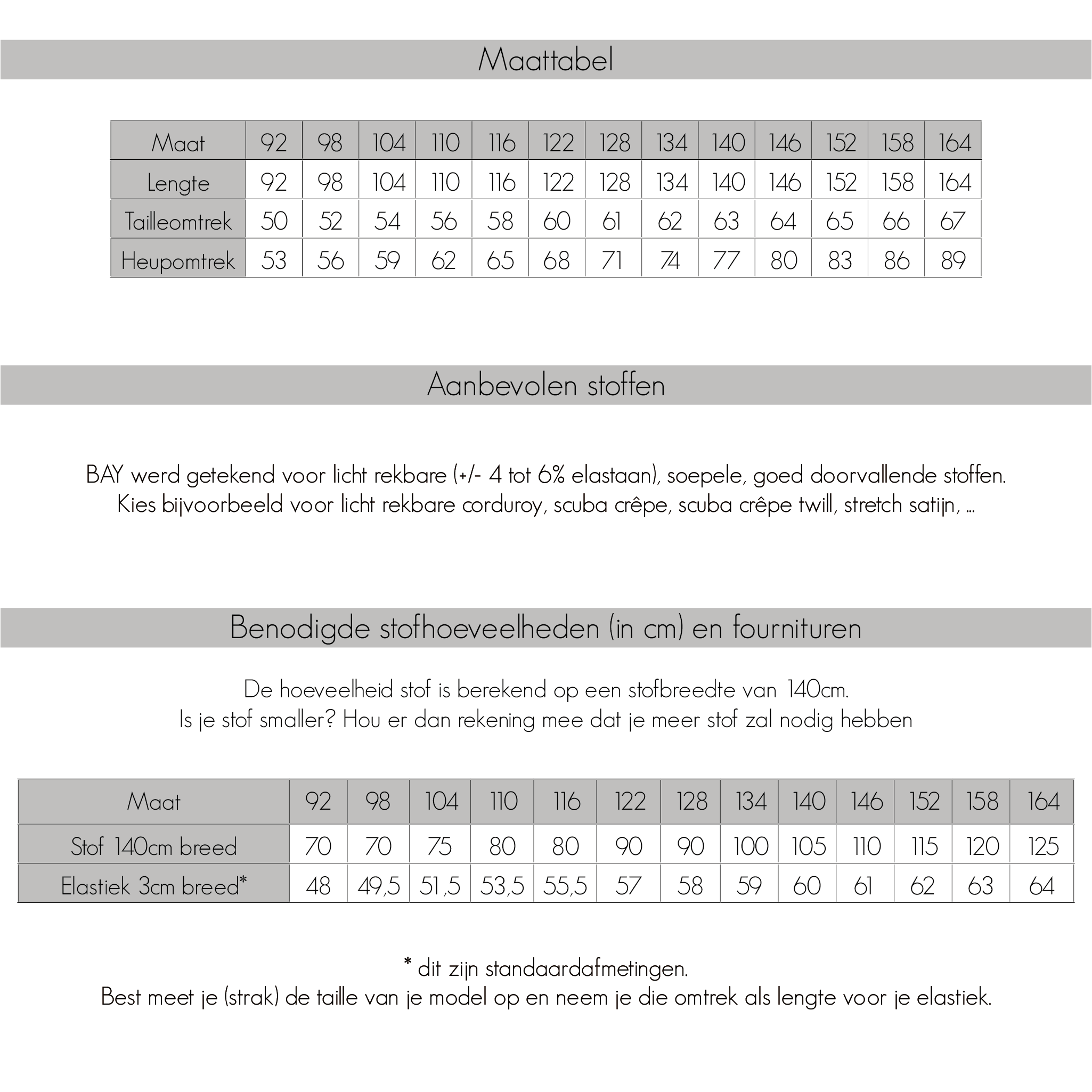 BAY was drafted for slightly stretching fabrics (+/- 4-6% elastane) that are subtle and have a good drape.