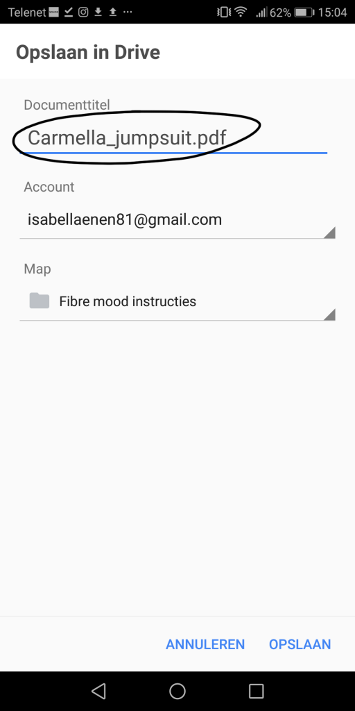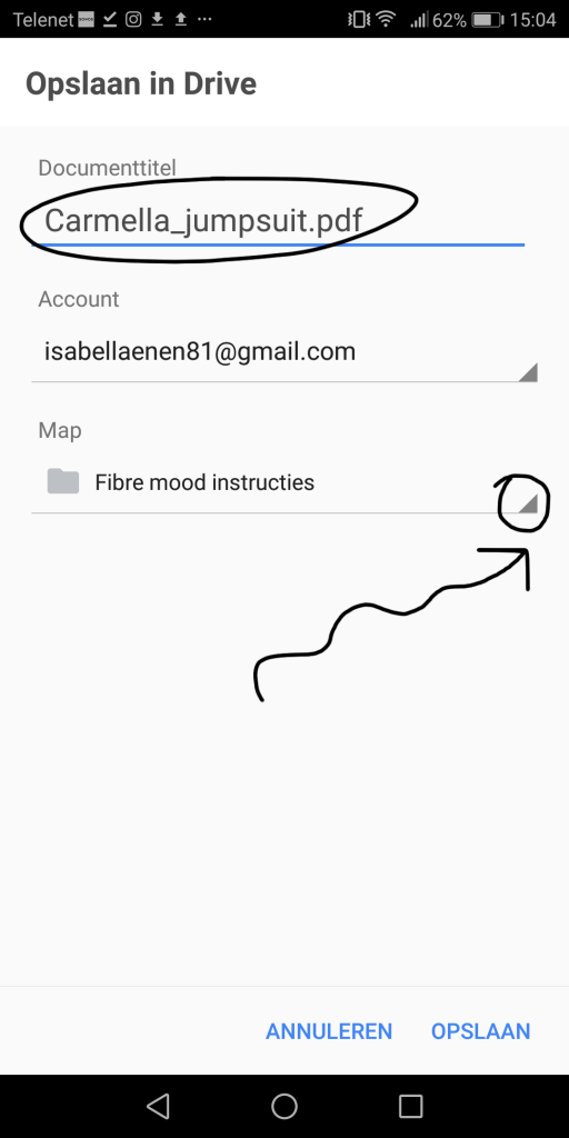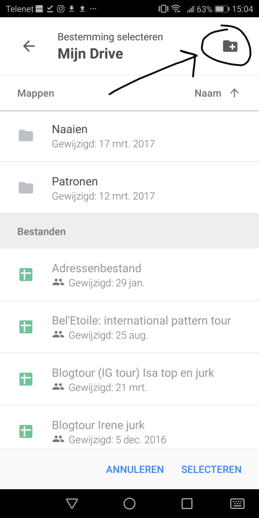 Daarna kies je de map waarin je de instructies wil opslaan in je drive.