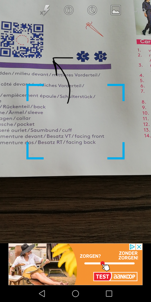 2) Scan de QR code van het patroon waarvan je de werkbeschrijving wil zien/downloaden