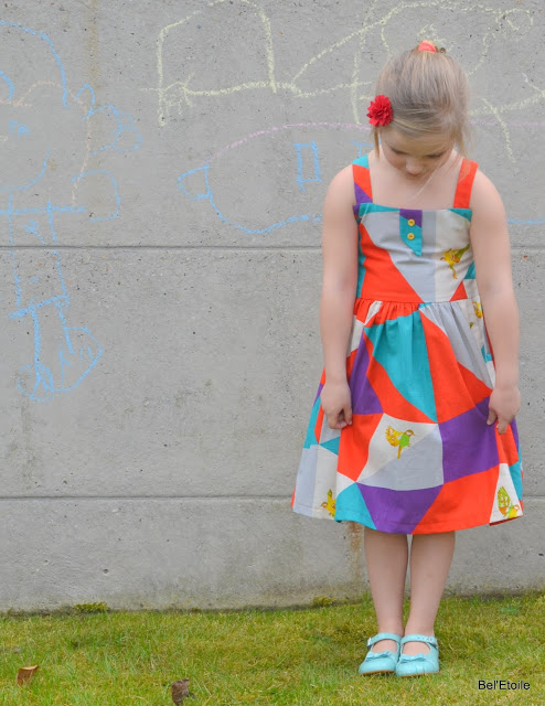 Het is een patroon van een echte zomerjurk, eentje die niet in de kast van kleine en grotere meisjes mag ontbreken.