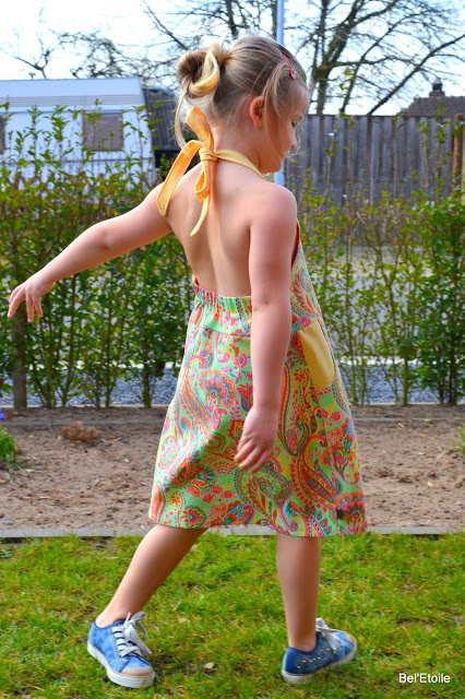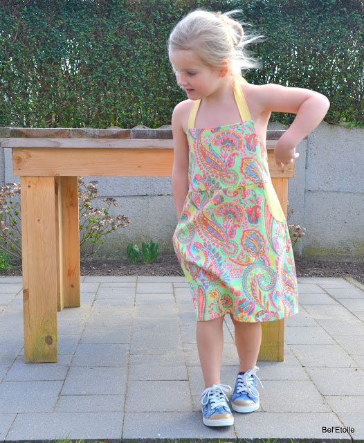 Voor dit kleedje koos ik bij het bovenstuk voor de schouderbandjes en het patje, de rok werd een rimpelrok met zakjes.