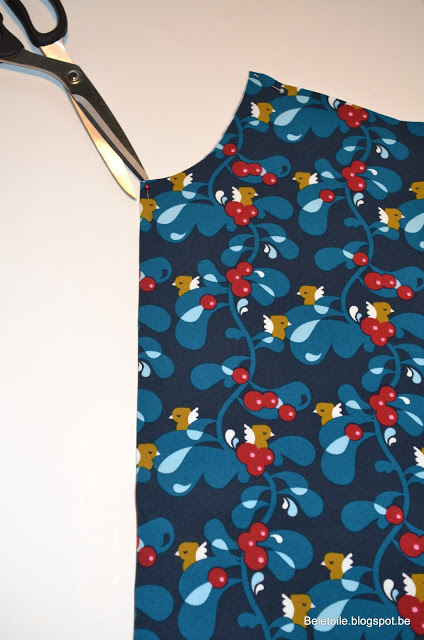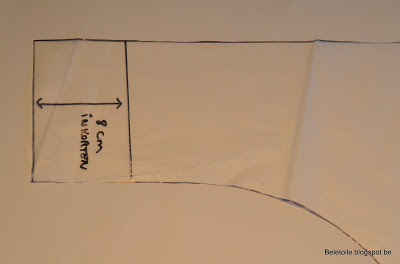 Ik knipte 8cm van de mouwen af, dit paste ik op voorhand aan op het patroon.