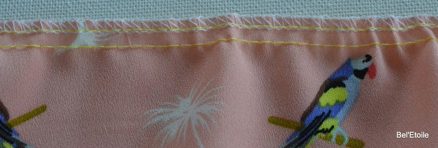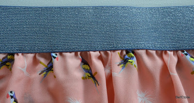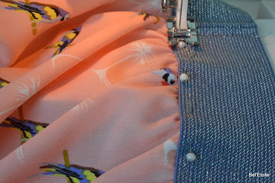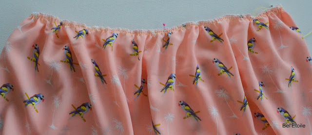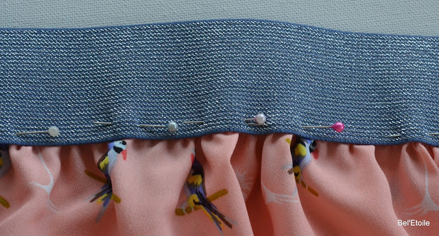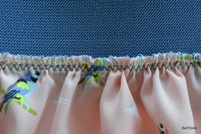 Ik stikte de eerste rimpeldraad op 5mm en de tweede op 1cm.