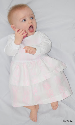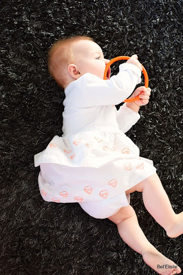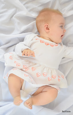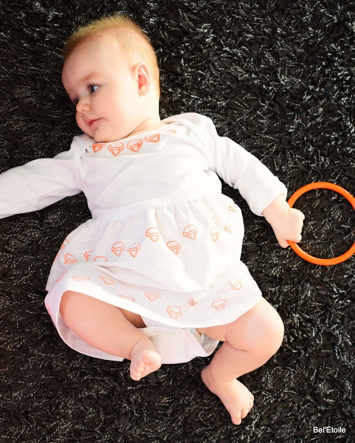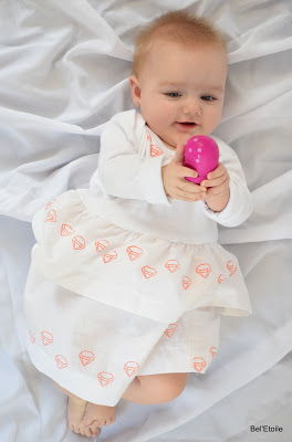 Waw, dat is is echt prachtig en heel origineel gevonden Isabel! Jullie kleine meid straalt in deze jurk. Wat is ze al veel veranderd zeg! Hoe oud is ze nu precies? Omrollen is zo leuk he voor dat kleintje, en voor de zus en de ouders ook om naar te kijken ;-))