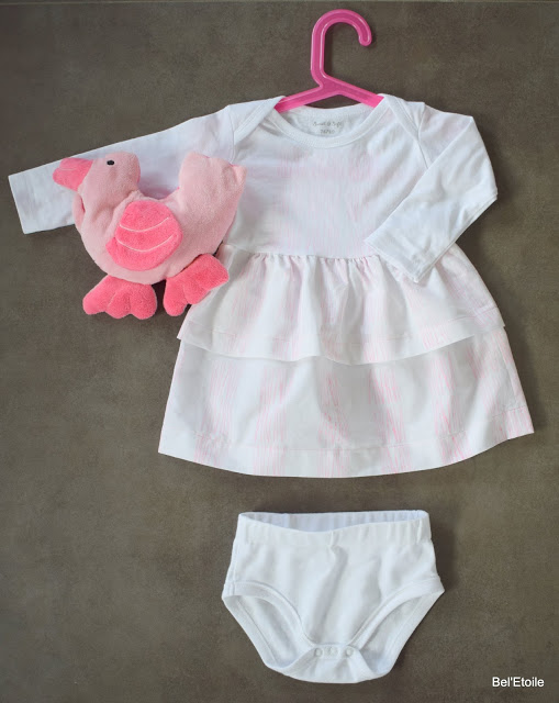 Zodus kocht ik enkele rompers en een ledikantlakentje bij Zeeman, het lakentje zal gebruikt worden als rok aan het jurkje.