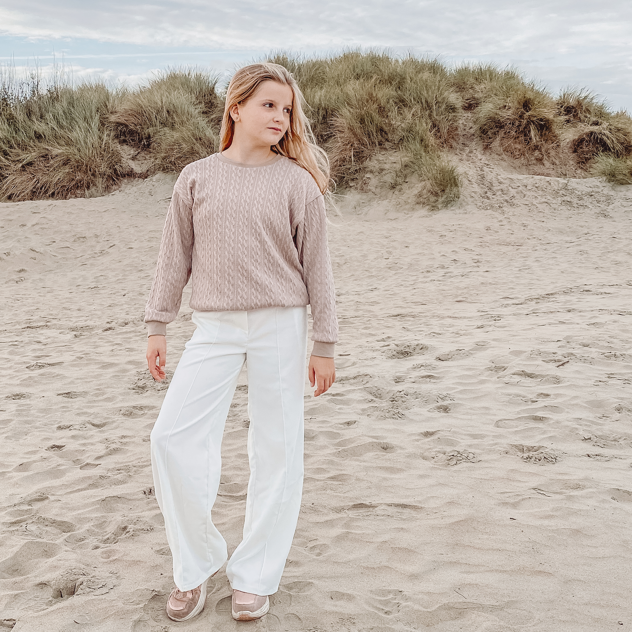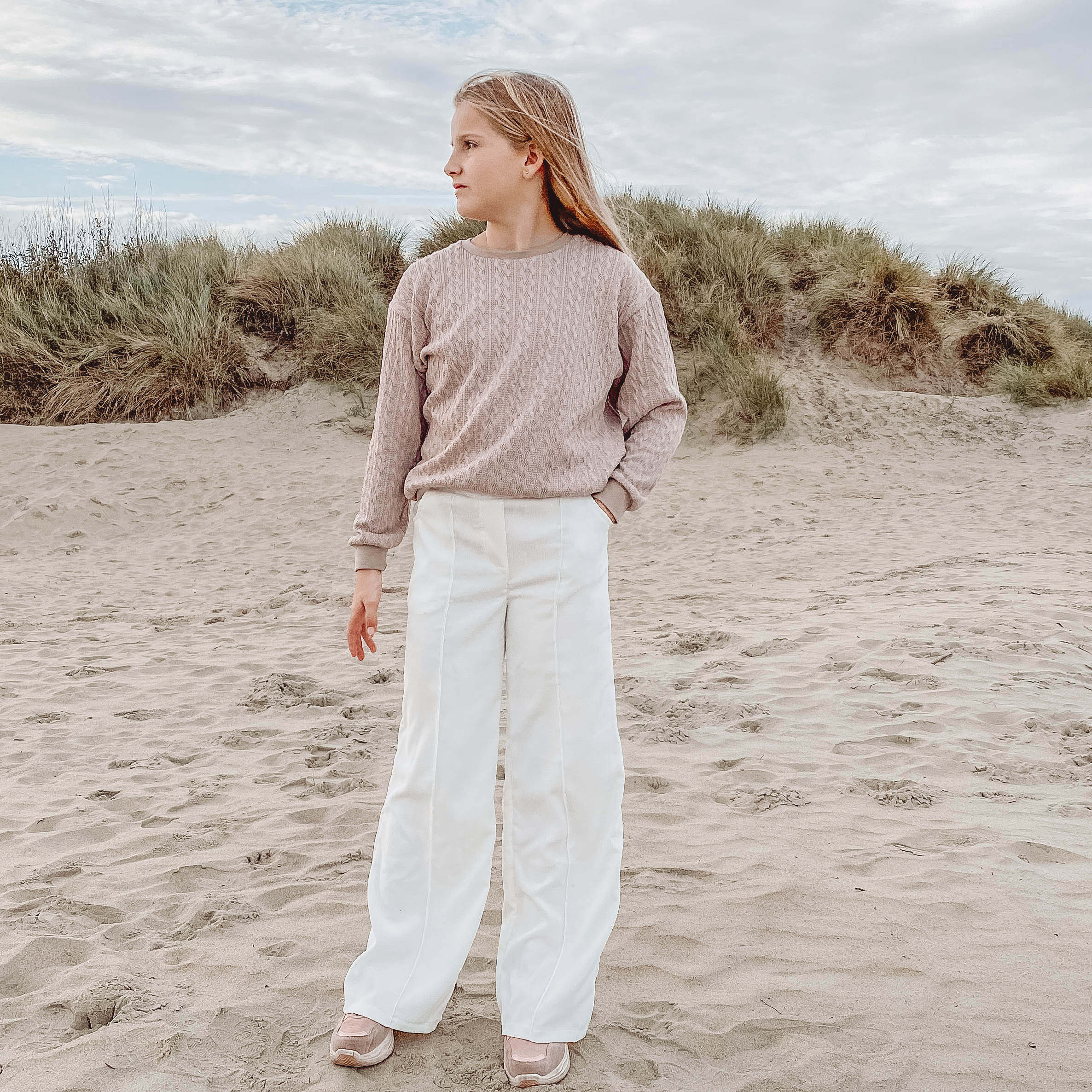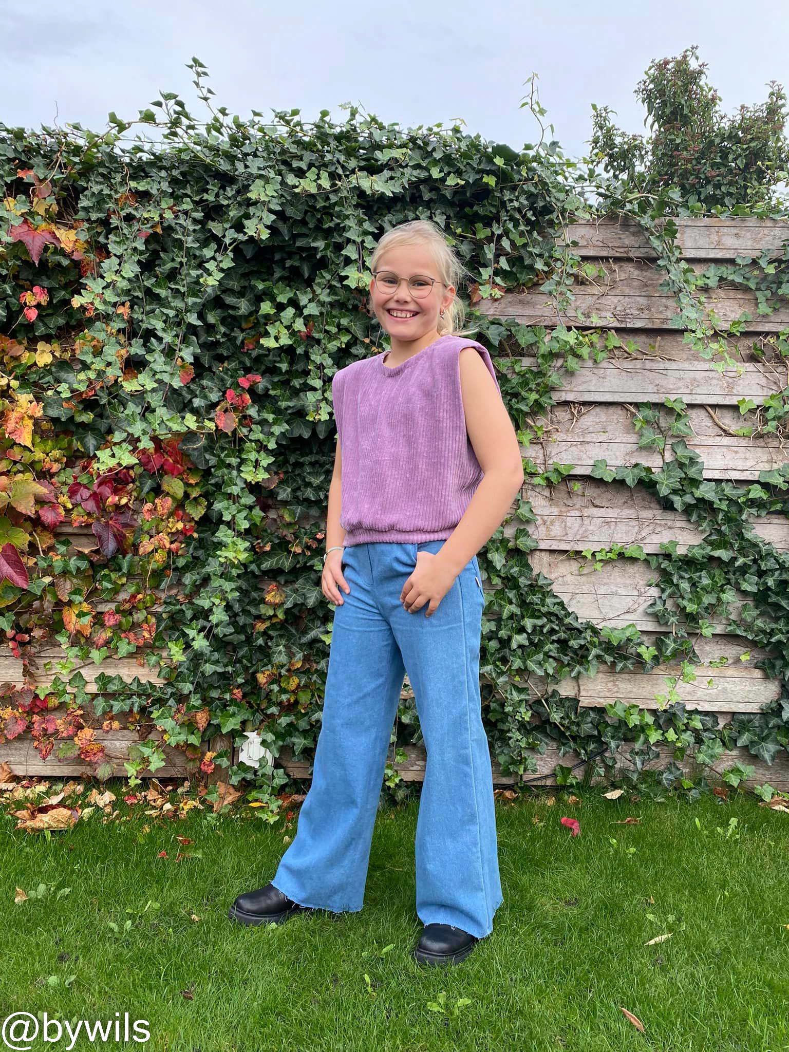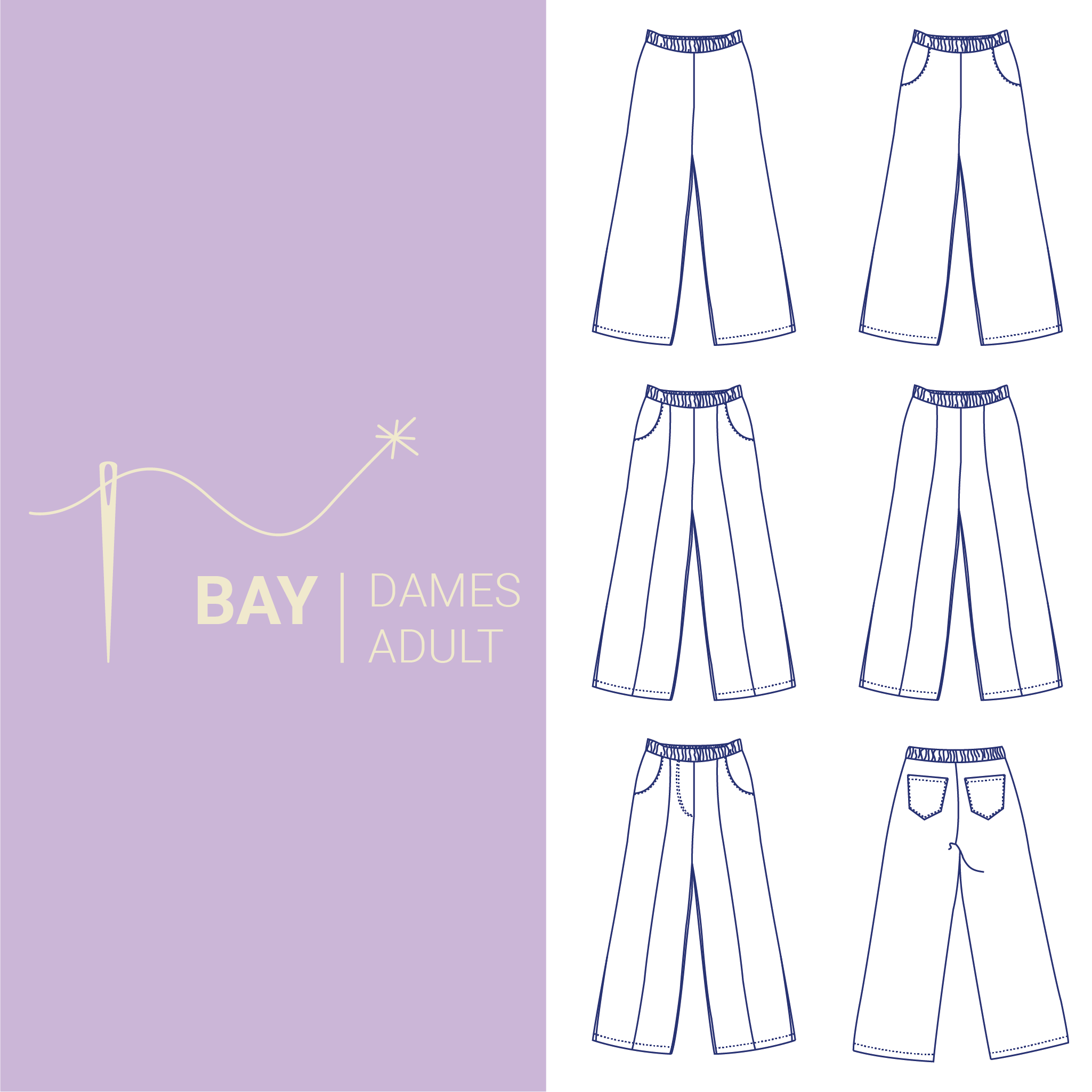 Bay is een comfortabele broek met wijde, losse pijpen.