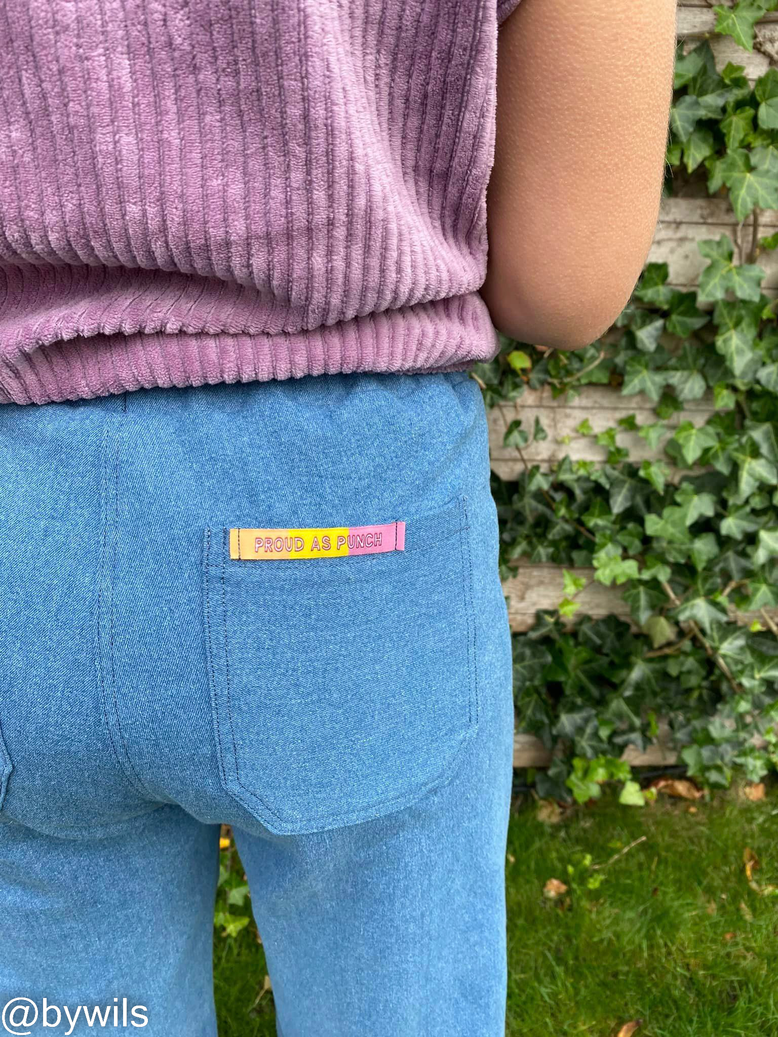 Op het voorpand kan je de kenmerkende lengtenaad stikken voor een extra accent.