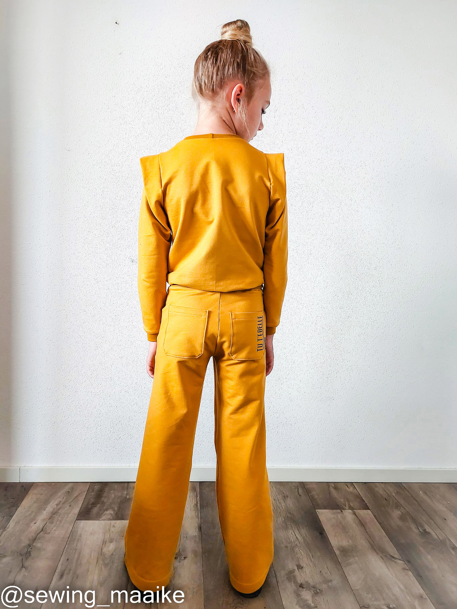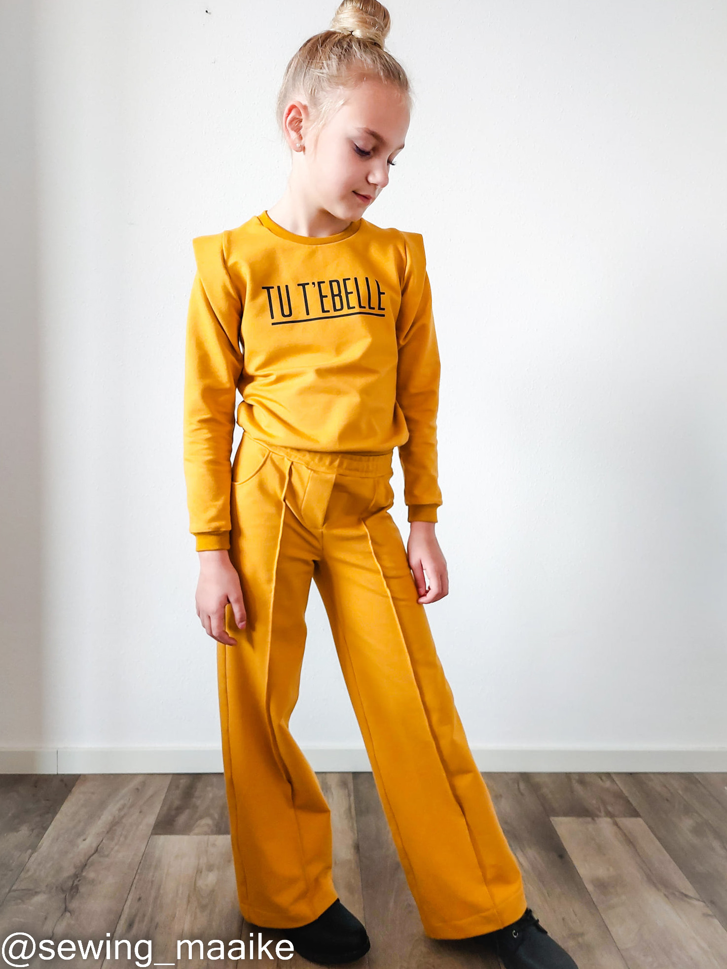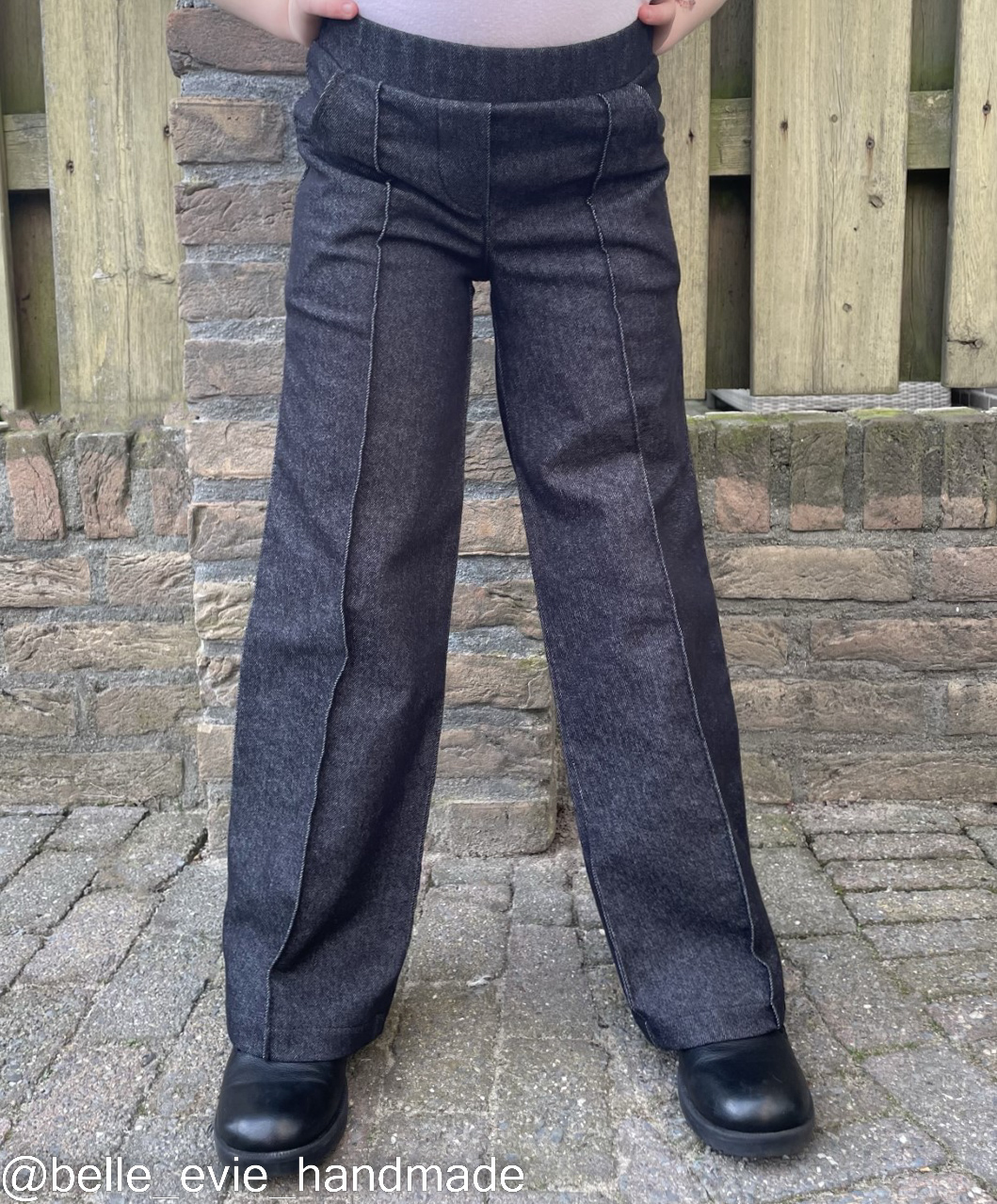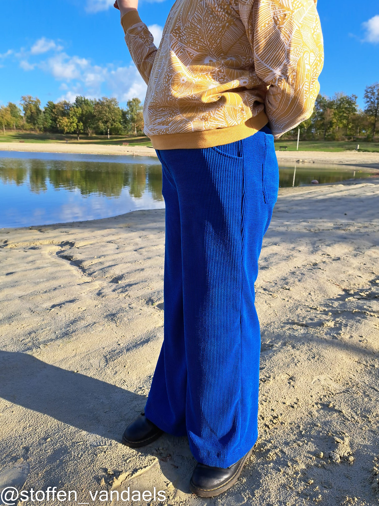 Als je een te stijve stof kiest, zal deze gaan ‘poffen’ en lijkt de broek te groot, dat willen we
