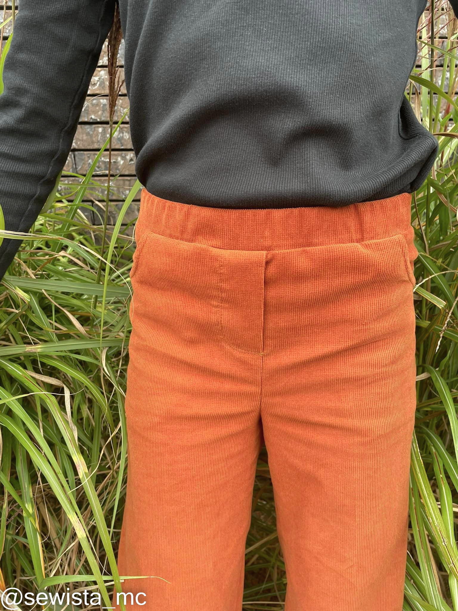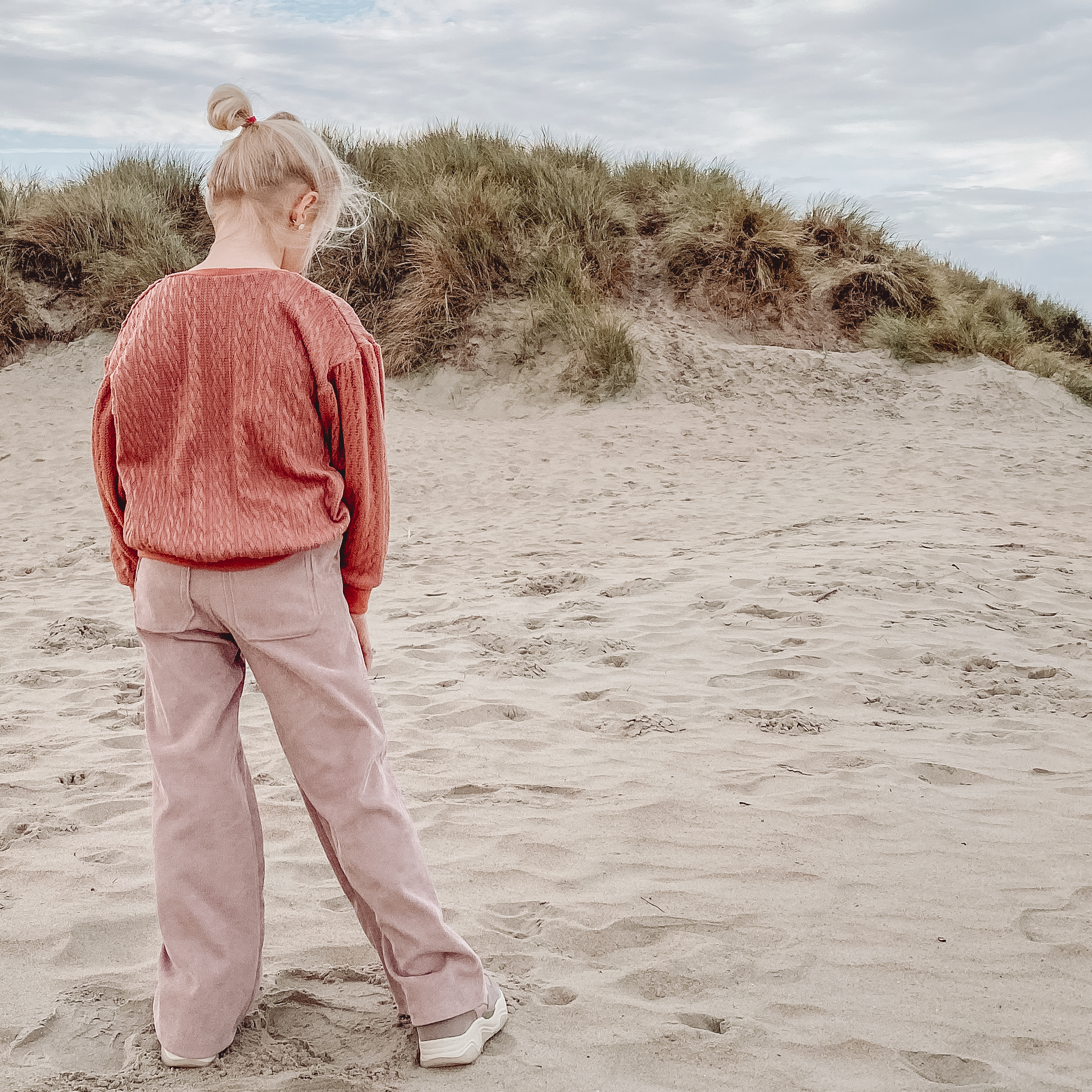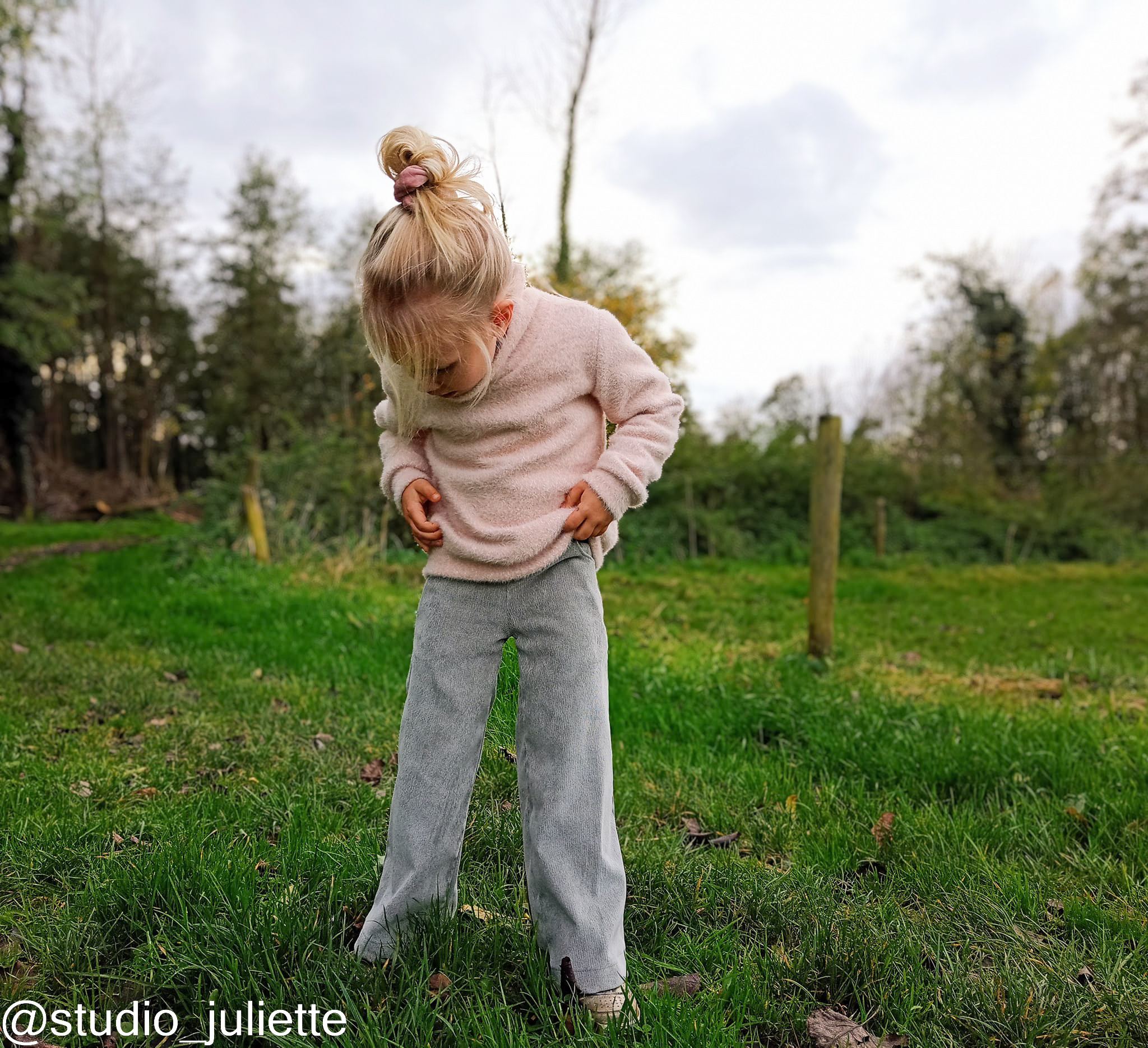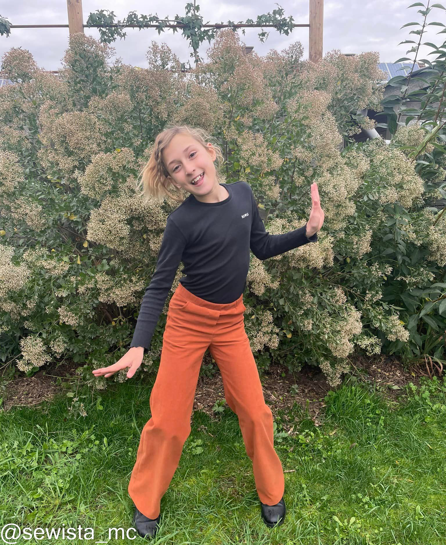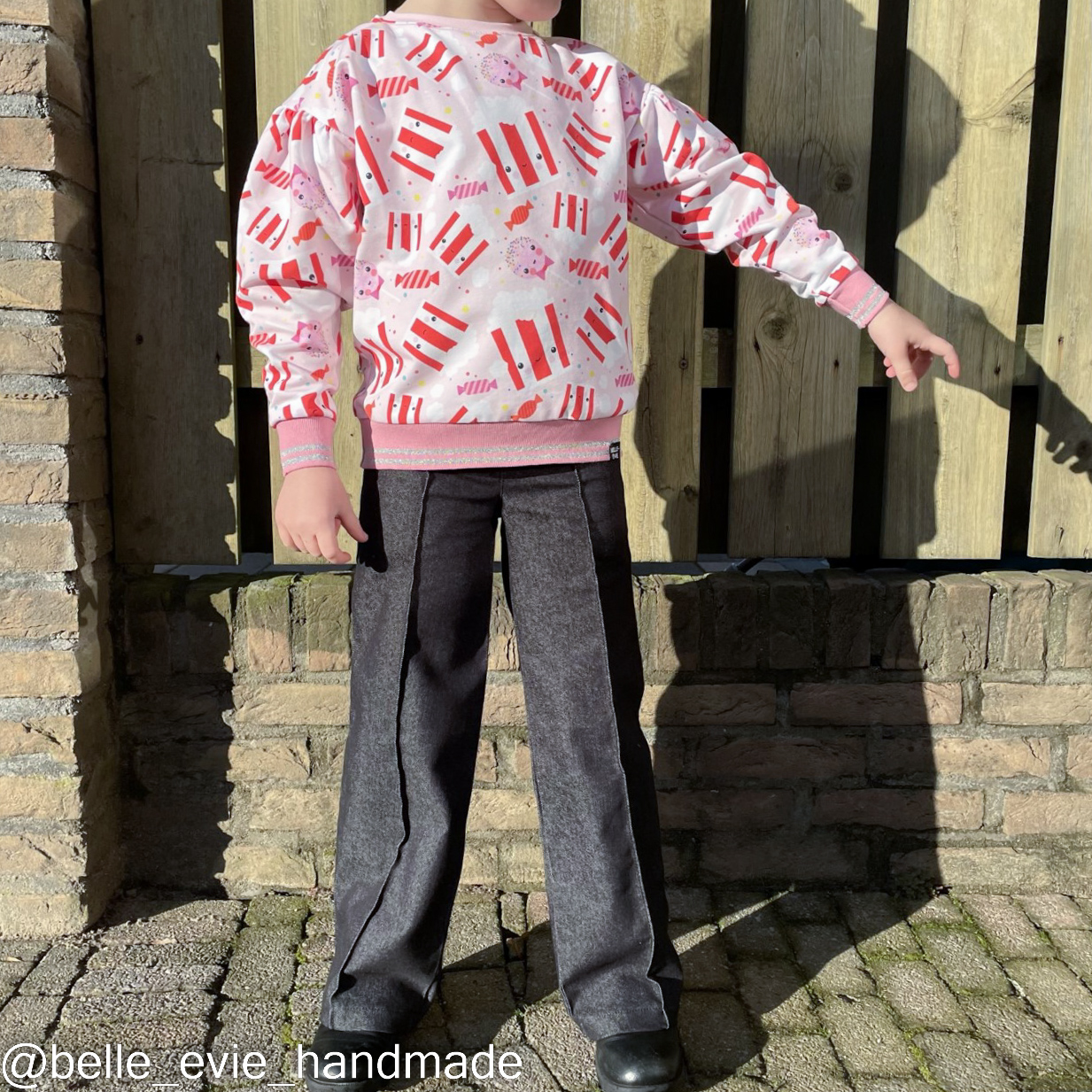 Als je een te stijve stof kiest, zal deze gaan ‘poffen’ en lijkt de broek te groot, dat willen we
