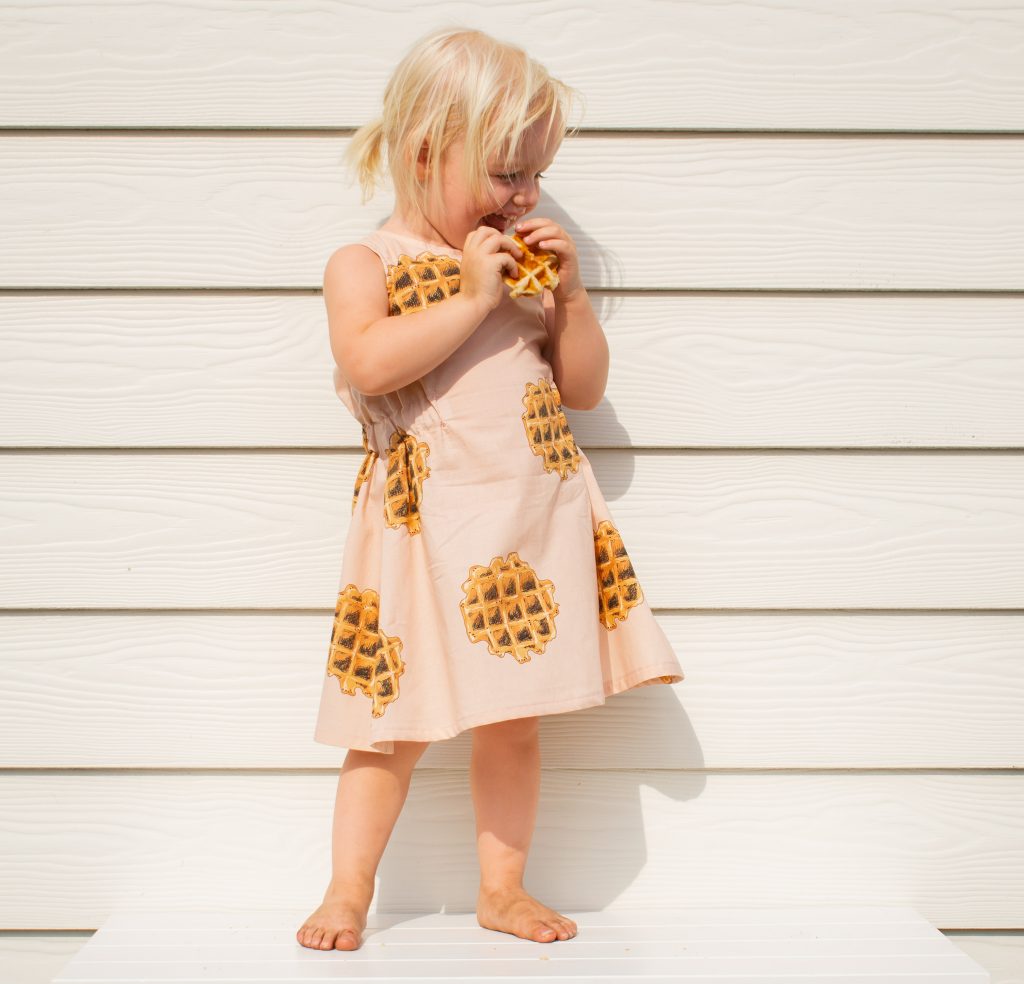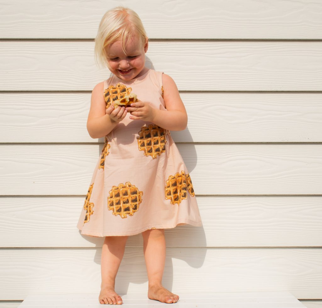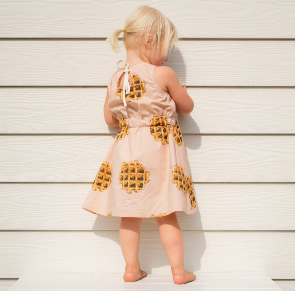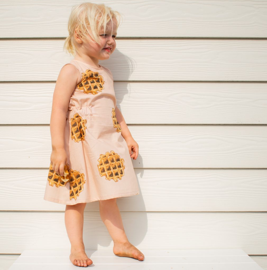 Het werd een simpel rimpelrokje, naar zeer gesmaakt recept: twee lappen op stofbreedte aan elkaar stikken, bovenaan een tunnel stikken en elastiek erdoor :-).
