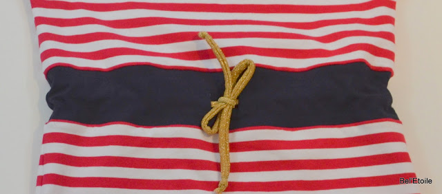 Stof: Blauw gestreepte stof (Robert Kaufman) en witte kant – Juffertje Uil