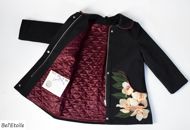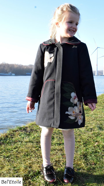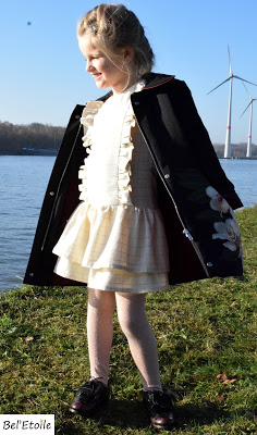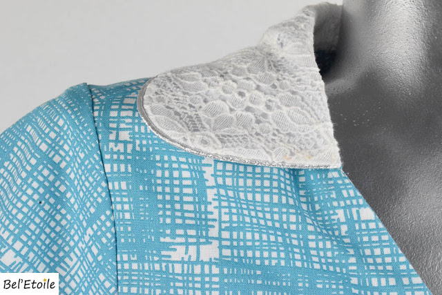 Het kraagje en de mouwtjes kregen een kanten toets en maken het geheel lieflijk en meisjesachtig.