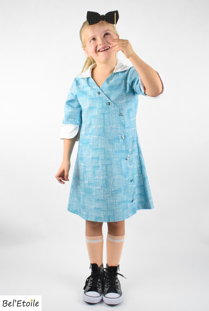 Resoluut koos ik voor de knoopjesversie met ronde kraag en korte mouwen en smelt zelf als ik naar het jurkje kijk :-).