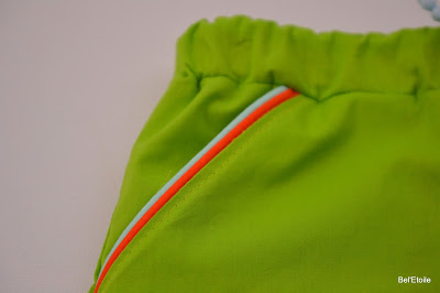 Aan de zakjes ging ik voor een dubbel paspeldetail, in de tailleboord voor een pompomlint en af was het setje!