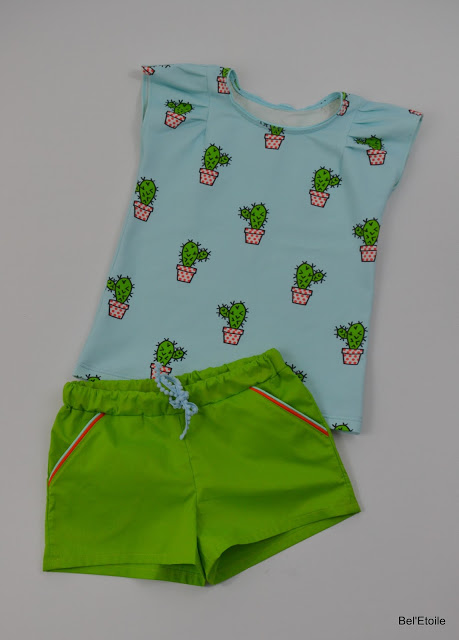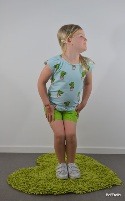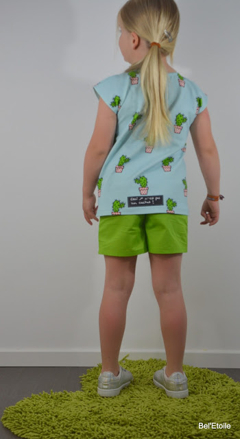 Het patroon van de short vond ik in B inspired en maakte het in een groen katoentje dat ik kocht bij Miss Anaïs.