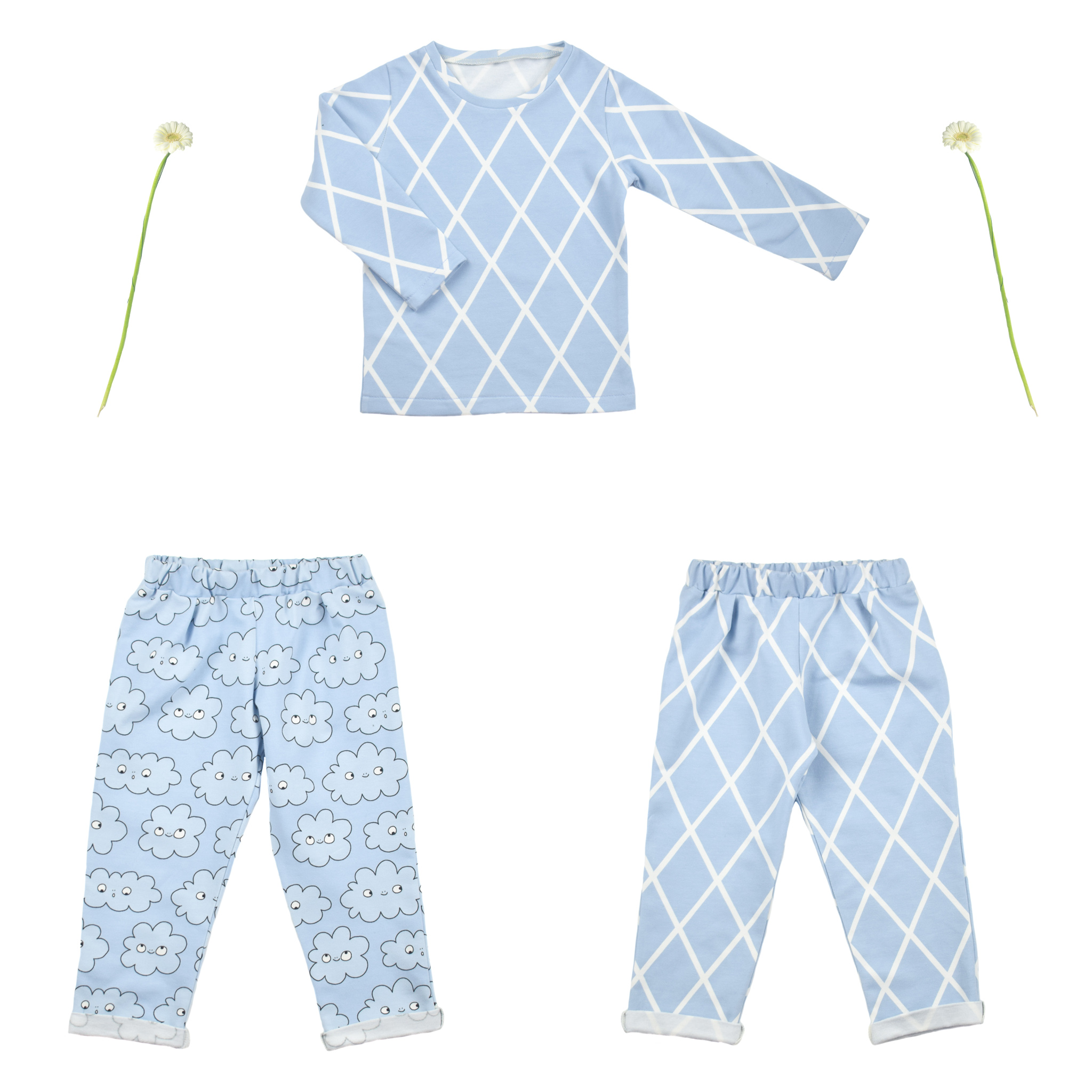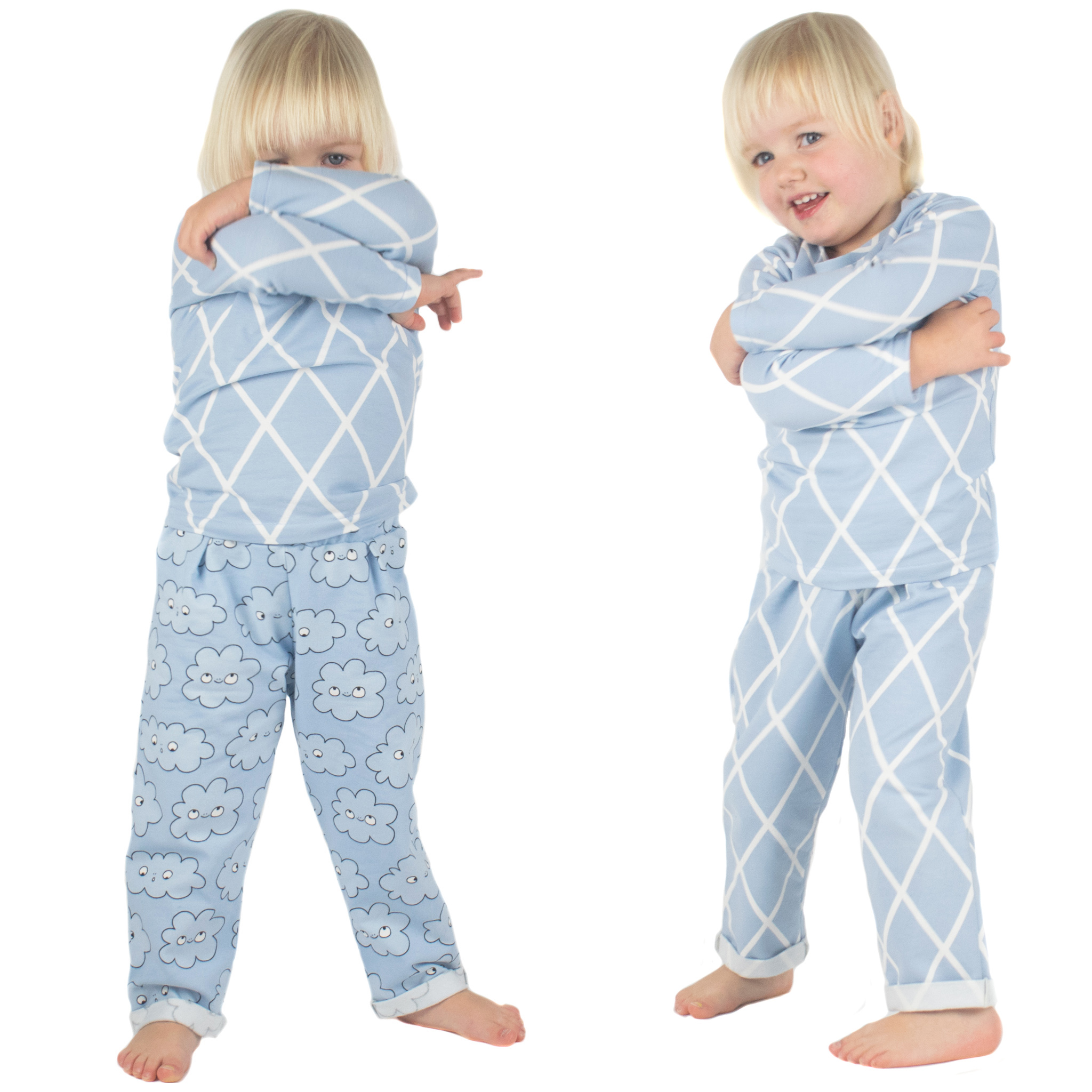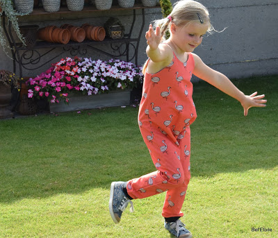 Ik koos er daarom ook voor om de meter die ik kreeg volledig op te gebruiken en maakte respectievelijk een shirt voor Sterre, een broekje voor Nova en een luierzakje.