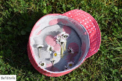 Ik wilde het simpel houden dus koos voor een sobere grijze canvas, lieflijke hartjesvoering en een prachtige veter van See you at six fabrics als finishing touch.