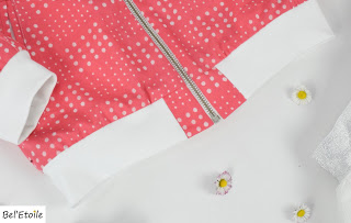 De tailleboord en halsboord van de sweater werkte ik af met de achterkant van de stof voor een perfecte kleurmatch.