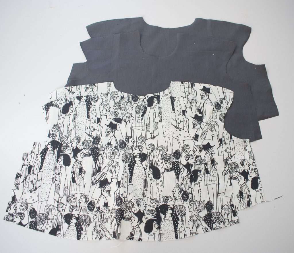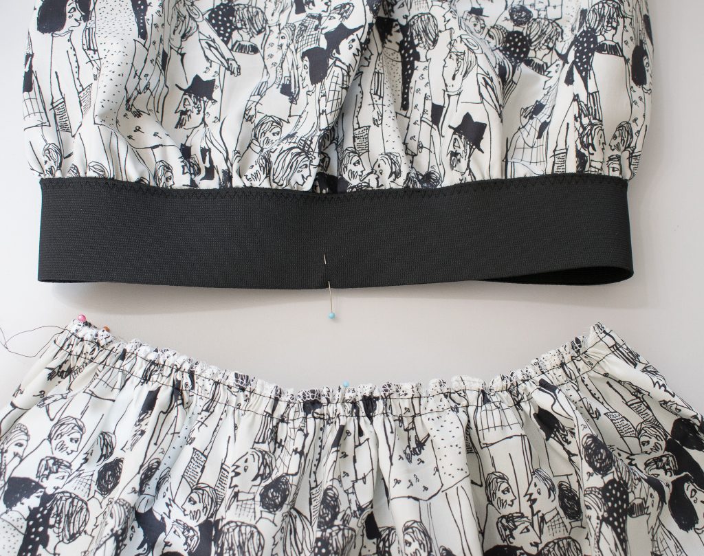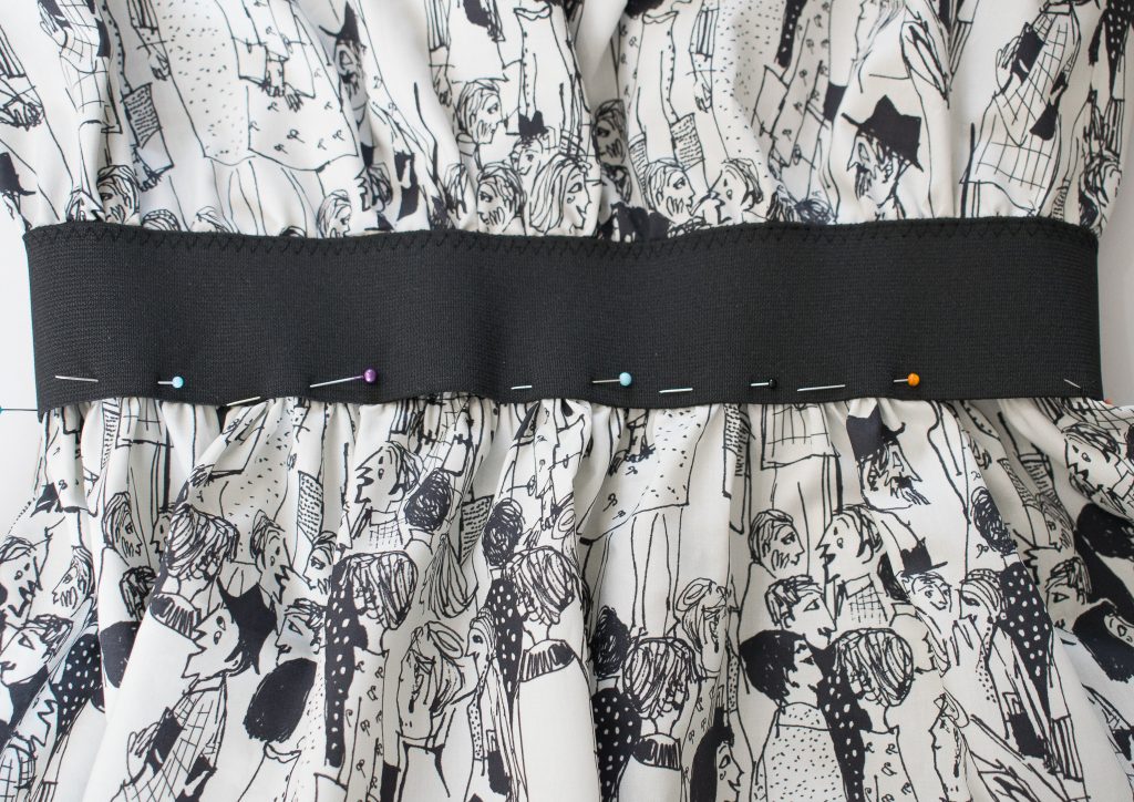 Leg je belegdelen op je jurk, goede kanten op elkaar en speld vast.