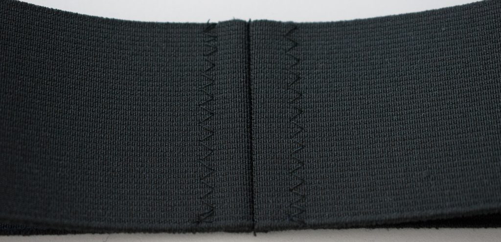 Doorstik nu het beleg smal op de kant, zorg ervoor dat de naadwaarde van de hiervoor gestikte naad onder het beleg ligt zodat je het mee vaststikt.