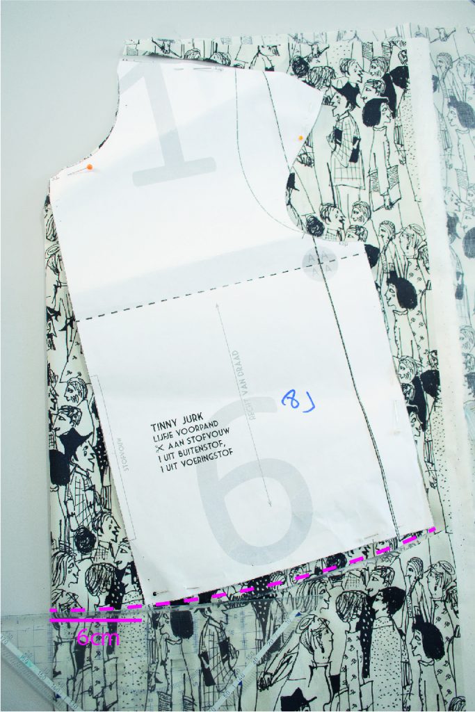 Knip het patroondeel van het voorpand door op aangeduide stippellijn.