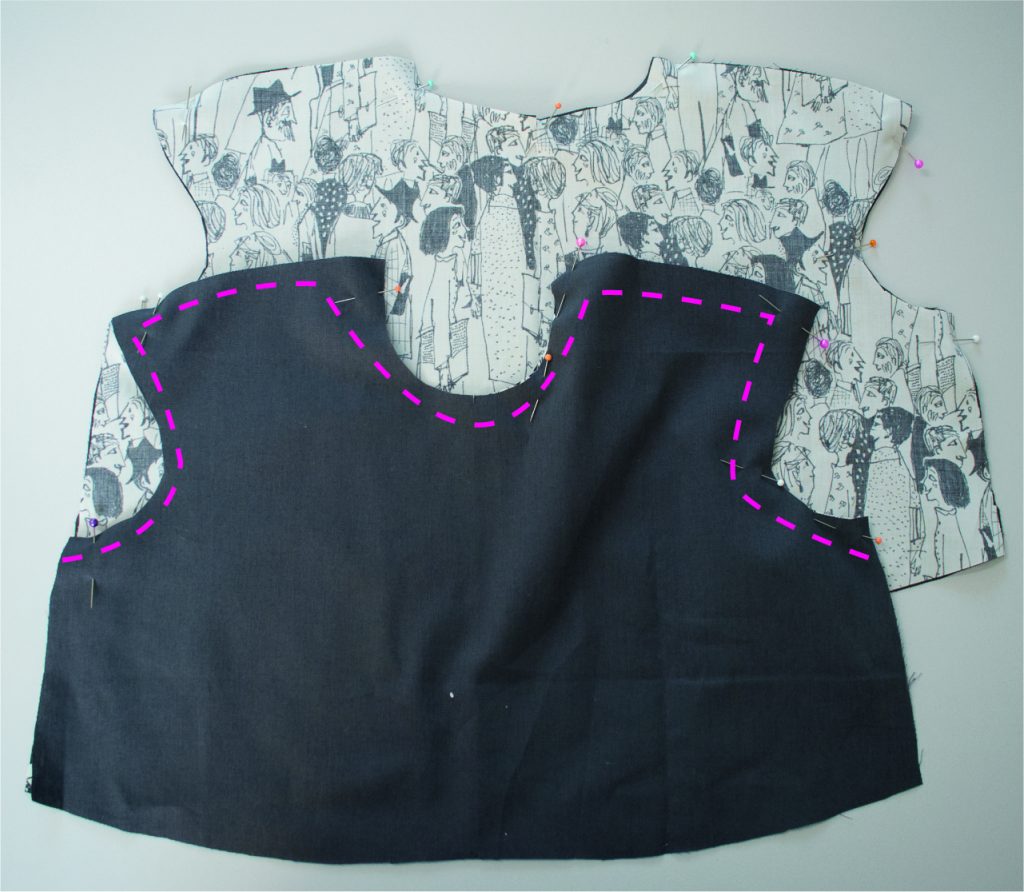 Doe hetzelfde voor de schoudernaden van voorpand en achterpand.
