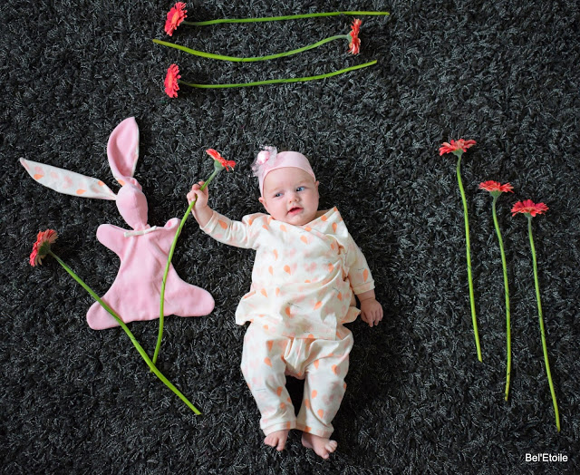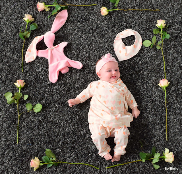 Het is alweer een double gauze pareltje van Nani Iro en past zo mooi bij Nova’s haartjes en oogjes.