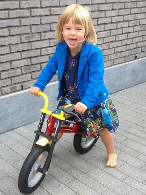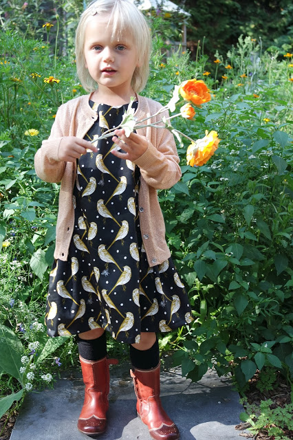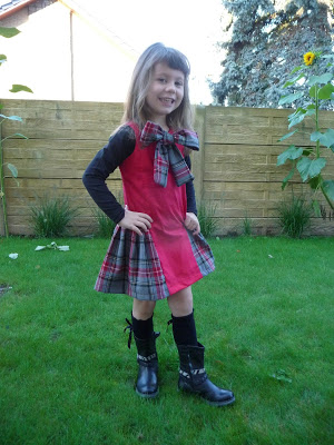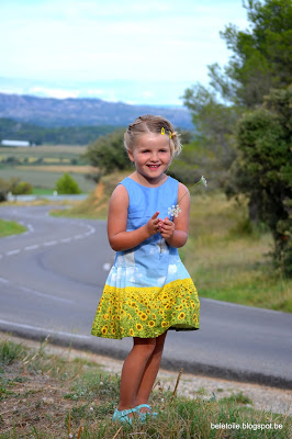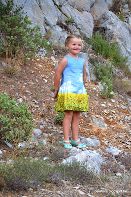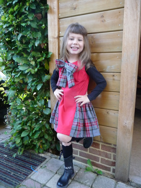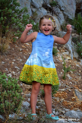 Zij maakte voor haar dochter de jurk met rimpelrok en zakken, in een mooie grid stof, geheel binnen haar stijl.