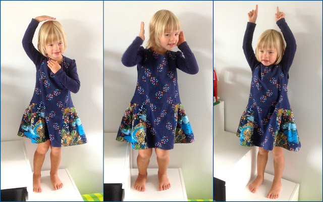 Dochtertje Fin showt enthousiast haar sweaterdress!