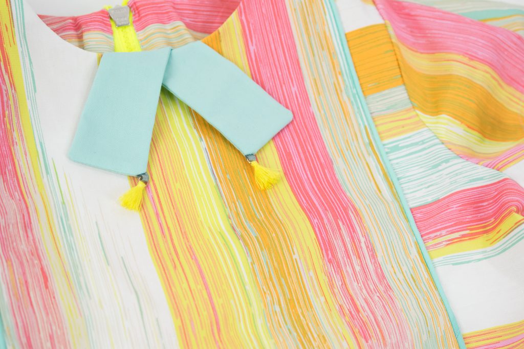 Voor de mouwboorden en tailleboord gebruikte ik de achterkant van de stof.